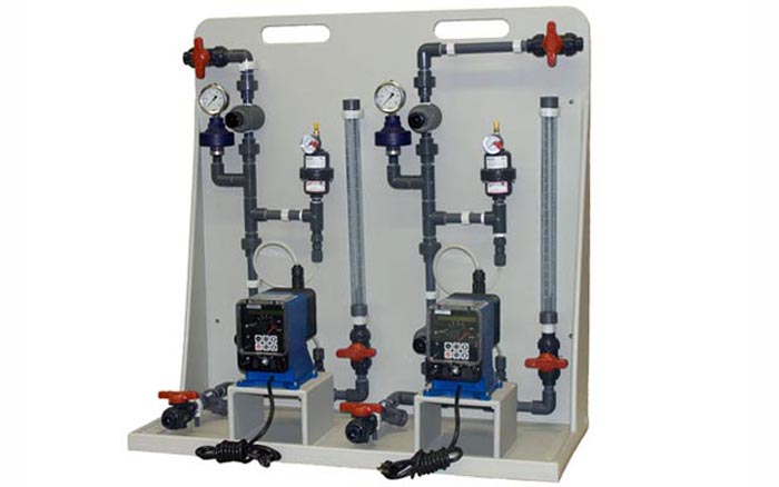 循環(huán)水加藥裝置是一種全新概念的化學(xué)水處理加藥設(shè)備,廣泛于火力發(fā)電、石油、化工等行業(yè)爐水處理系統(tǒng)、原水處理系統(tǒng)以及廢水處理系統(tǒng)。它是由計(jì)量泵、溶液箱、控制系統(tǒng)、管路及閥門等組件安裝在同一底座上,實(shí)現(xiàn)藥液溶配、計(jì)量投加功能。按其用途有聯(lián)氨除氧加藥裝置、緩腐蝕劑加藥裝置、調(diào)節(jié)PH值加酸(堿)裝置以及硫酸亞鐵鍍膜加藥裝置等。按其形式分一泵一箱、兩泵兩箱、三泵兩箱、多泵多箱等。