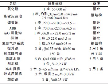 表2 主要構筑物及設備