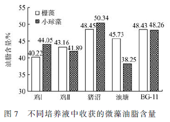 2. 3 利用養殖廢水培養的微藻細胞油脂含量