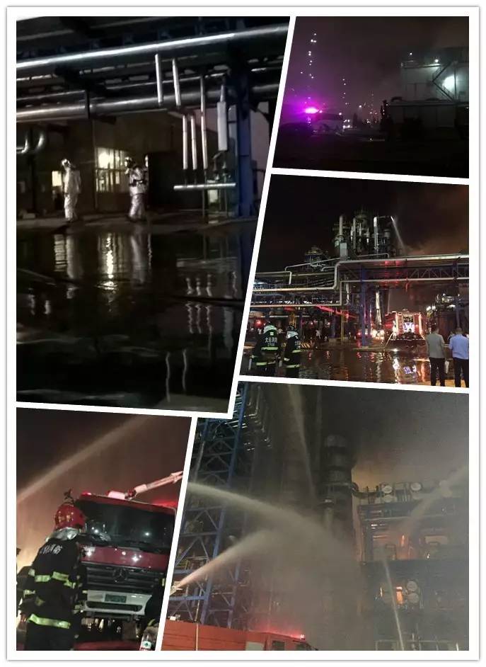 政府相關部門和企業迅速啟動應急預案,市領導在現場指揮。數百名消防官兵在現場實施救援,消防隊員和車輛仍在對事發地進行噴水降溫。環保等相關部門對空氣和水質進行后期跟進監測。