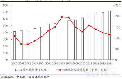 2014 年廢水排放量716 億噸。2014 年全國(guó)工業(yè)廢水排放量716 億噸,5 年復(fù)合增長(zhǎng)率4%。2014 年治理廢水投資總額115 億元。