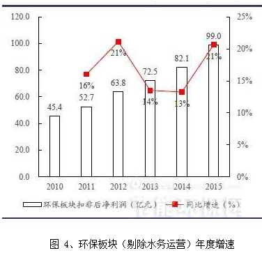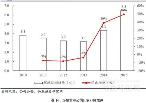環(huán)境監(jiān)測(cè):1)政策持續(xù)加碼,監(jiān)測(cè)體系天羅地網(wǎng):15 年8 月,國(guó)辦印發(fā)《生態(tài)環(huán)境監(jiān)測(cè)網(wǎng)絡(luò)建設(shè)方案》,要求到2020 年,環(huán)境監(jiān)測(cè)網(wǎng)絡(luò)實(shí)現(xiàn)環(huán)境質(zhì)量、重點(diǎn)污染源、生態(tài)狀況監(jiān)測(cè)全覆蓋,天羅地網(wǎng)成型。同時(shí)排污費(fèi)翻倍征收&稅法前提下,監(jiān)測(cè)定量化的重要性日益凸顯。結(jié)合互聯(lián)網(wǎng)+技術(shù),監(jiān)測(cè)服務(wù)將由傳統(tǒng).報(bào)數(shù).功能轉(zhuǎn)至.監(jiān)測(cè)-溯源-分析-治理.功能,密集化、精準(zhǔn)化必成趨勢(shì);需求端由此將發(fā)生質(zhì)變。2)板塊增速:板塊增速持續(xù)上行,13、14、15 年全年扣非業(yè)績(jī)同比增長(zhǎng)-4%、39%、49%。