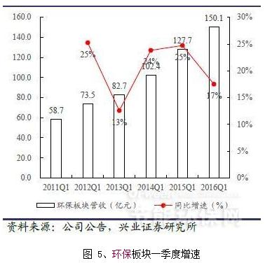 圖 6、環(huán)保板塊(剔除水務(wù)運(yùn)營(yíng))一季度增速