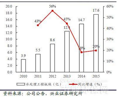 水處理工程、水務(wù)運(yùn)營(yíng):1)水務(wù)行業(yè)整體保持較快增長(zhǎng):城市供水能力保持了穩(wěn)定的增長(zhǎng),五年復(fù)合增長(zhǎng)率達(dá)到1.2%,2013 年增長(zhǎng)率為1.1%。城鎮(zhèn)污水處理能力達(dá)到較快增長(zhǎng),五年符合增長(zhǎng)率達(dá)到11%,2013 年增長(zhǎng)率為5.9%。水十條預(yù)計(jì)投資總額將達(dá)到2 萬(wàn)億元,將從量變——側(cè)重大規(guī)模水務(wù)投資逐漸轉(zhuǎn)向質(zhì)變——提高排放水質(zhì)和加強(qiáng)水質(zhì)監(jiān)測(cè)等。我們強(qiáng)調(diào)水十條或是水處理提標(biāo)化的重要轉(zhuǎn)折點(diǎn);另外我們強(qiáng)調(diào)PPP 模式將是水處理工程行業(yè)的另一個(gè)變量,地方政府和水處理公司的結(jié)合將帶來(lái)地方水處理需求的集中釋放,這也是我們推薦水處理工程行業(yè)的一個(gè)重要的邏輯支點(diǎn)。2)水處理板塊增速:水處理工程板塊13、14、15 年扣非業(yè)績(jī)同比增長(zhǎng)45%、18%、20%。