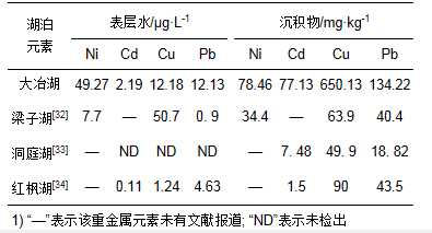 表 1 大冶湖表層水和沉積物中重金屬含量與其他湖泊的比較