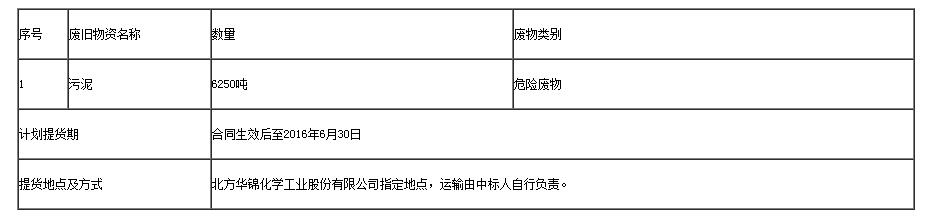 北方華錦化學(xué)工業(yè)股份有限公司污泥處置已經(jīng)確定,現(xiàn)具備處理?xiàng)l件,歡迎有具備本公告要求資質(zhì)能力的企業(yè)、及其它法人組織參加。
