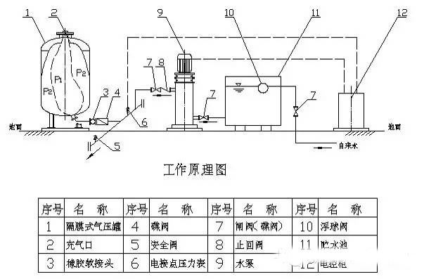 定壓罐工作原理:定壓罐定壓,是在膨脹水箱基礎(chǔ)上發(fā)展起來(lái)的一類(lèi)定壓補(bǔ)水裝置,其原理同閉式膨脹水箱。當(dāng)系統(tǒng)水溫變化或泄漏引起水的容積變化時(shí),由于氣壓罐內(nèi)氣體高壓縮性的緩沖作用,使系統(tǒng)壓力穩(wěn)定在預(yù)設(shè)的壓力范圍內(nèi)。如果系統(tǒng)壓力下降至預(yù)設(shè)壓力的下限時(shí),由電接點(diǎn)繼電器動(dòng)作啟動(dòng)補(bǔ)水泵,使之向系統(tǒng)供水,直至壓力達(dá)到預(yù)定的的壓力上限值時(shí)止。若系統(tǒng)壓力超過(guò)設(shè)定的比較高壓力值時(shí),安全閥自行向軟水箱或排水系統(tǒng)泄水降壓。以維持系統(tǒng)的壓力平衡。該裝置由氣壓罐、補(bǔ)水泵、安全閥、電接點(diǎn)壓力表、控制箱等組合而成。
