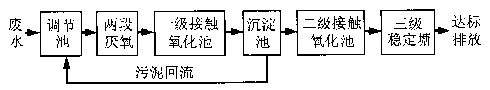 化工制藥廢水有機(jī)物含量高,且含有有機(jī)氯化物,對(duì)好氧【水處理設(shè)備】微生物有毒性,所以在自然條件下很難降解,對(duì)環(huán)境污染嚴(yán)重。經(jīng)過(guò)馴化的厭氧微生物可以破壞有機(jī)氯的長(zhǎng)鏈結(jié)構(gòu)使之?dāng)噫溞纬奢^小分子物質(zhì)進(jìn)而被生化降解。據(jù)此原理,該企業(yè)結(jié)合廠(chǎng)區(qū)現(xiàn)有坑塘的有利條件,選擇了兩段厭氧做預(yù)處理、兩級(jí)接觸氧化做主工藝處理、三級(jí)穩(wěn)定塘作后序處理的工藝。其流程見(jiàn)圖1。