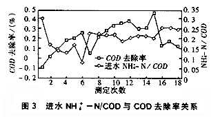 2.2 進(jìn)水NH4+-N/COD和COD/TP與COD的去除率關(guān)系