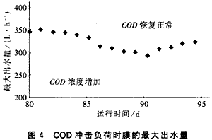 2.5 膜通量變化與COD沖擊負(fù)荷