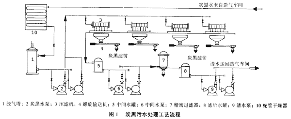 浩良河化肥廠尿素生產原料為重油,氣化后可小時副產炭黑水60余噸,此工藝廢水未經任何處理,直接排入灰場進行自然沉降,由于炭黑密度較小,沉降速度較慢,沉淀后出水經常夾帶炭黑,污染水源及環境。另外灰面高低不平,露出水面的灰面,經常風大起塵,嚴重污染了附近居民的居住環境。為此,該廠對造氣車間的炭黑污水進行綜合治理,建設了1套規模為60t/h的炭黑污水處理裝置,并且每小時可以副產粗炭黑約1.0t,回收軟化水約50t,使炭黑污水達到了零排放。