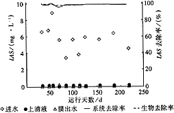 以上結果說明LAS的去除主要靠生物反應池中微生物的分解作用,膜對LAS的截留作用很小。