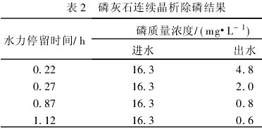 從表2可以看出,以磷灰石為晶種,當進水中磷質量濃度為16.3mg/L時,要使出水中磷質量濃度達到2.0mg/L以下的國家排放標準要求,水力停留時間約需0.27h;而【生活污水處理設備】以MgNH4PO4•6H2O為晶種,進水中磷質量濃度為18.68mg/L時,將其靜置2.7h,水力停留時間只需0.1h左右就可達到該標準。單從這一點來看,后者就比前者提高處理能力2.7倍。若維持同樣的停留時間0.27h,則處理后水中的磷濃度會更低。