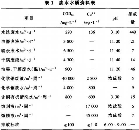 該項目電路板生產廠規劃生產能力為年產35萬m2多層線路板(PCB),采用曝光、蝕刻、電鍍等工藝技術。廢水中的銅離子和有機污染負荷較高,生物毒性強,主要污染物有廢酸、Cu2+、COD等。