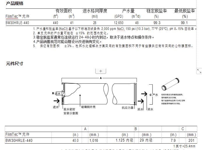 FilmTec™ BW30HRLE-440 膜元件