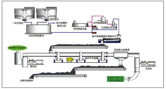 典型的造紙污泥處置——機械半干化污泥焚燒處置系統示意圖