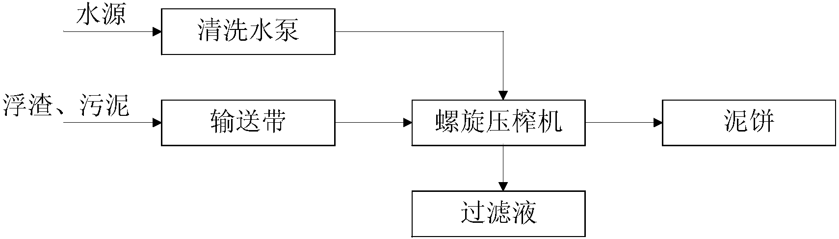 本發明要解決的技術問題是:提供一種污泥壓榨方法,解決了螺旋壓榨壓無法對廢紙再生造紙工藝中的原生污泥進行壓榨的技術問題,實現污泥的低成本干化處理。