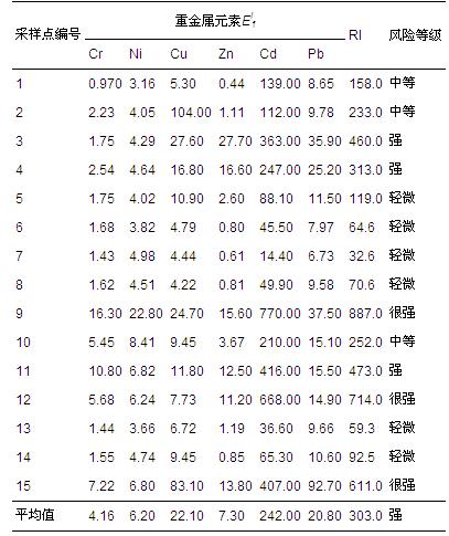2)多種重金屬綜合潛在生態風險指數,RI: