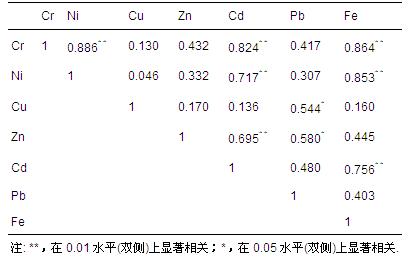 表4 滏陽河沉積物重金屬元素之間的相關系數
