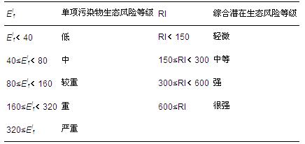 表3 單個及綜合潛在生態風險評價指數與分級標準